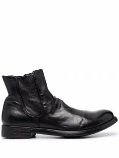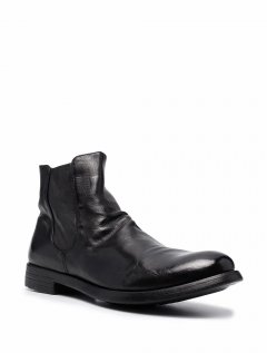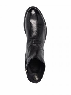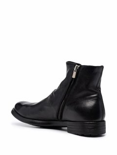 Comfort and style go hand in hand in our artisan Hive boots from black smooth soft leather. Their pared-back and timeless silhouette reveals a rounded almond toe our distinctive grosgrain heel pull tab and a caoutchouc tread sole with stacked heel.