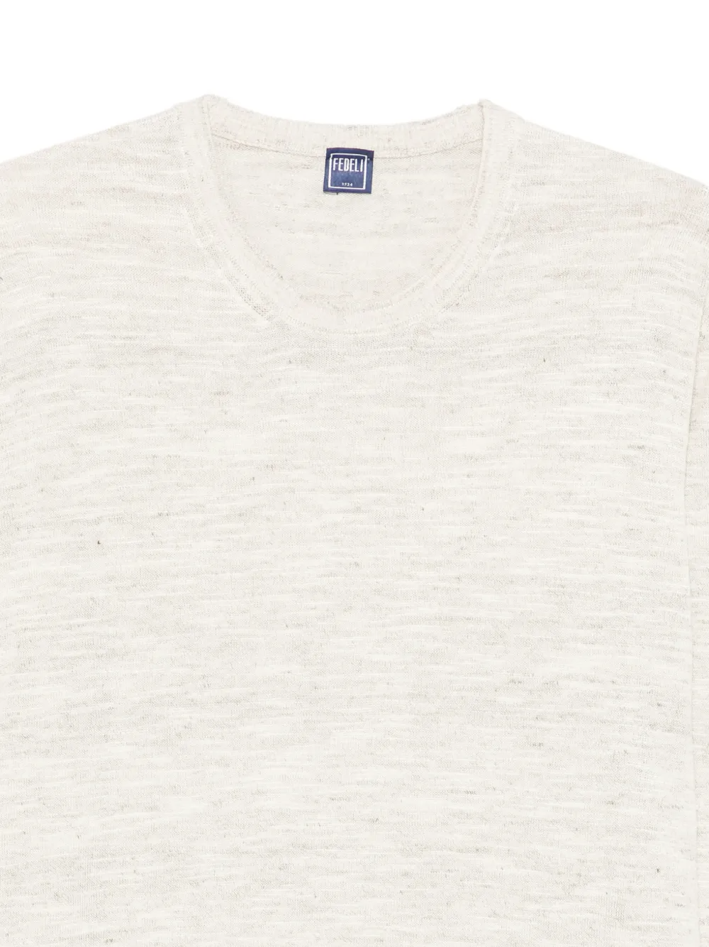 Crafted from a refined blend of linen and silk, the Argentina Bretone crewneck combines natural breathability with a smooth, fluid hand feel. Knitted in a 12-gauge, it features long sleeves and a clean plain stitch, offering effortless comfort and understated elegance.