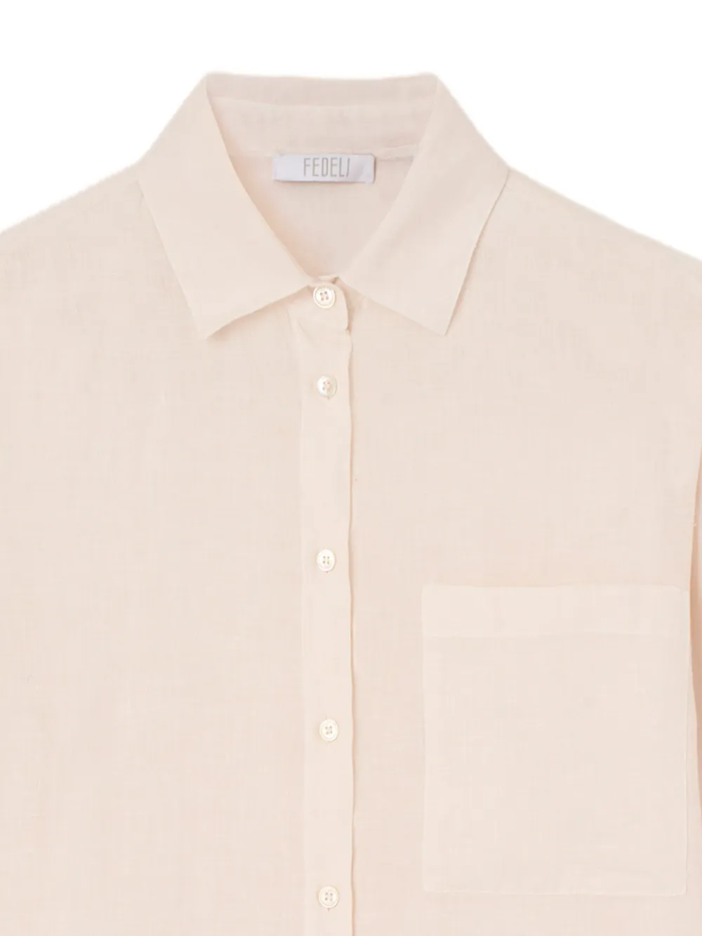Designed with a relaxed fit, it drapes fluidly on the body, ensuring comfort without excess. The garment-dyed finish enhances the natural texture of the linen, creating subtle tonal depth and a lived-in character that makes each piece unique. A timeless essential, equally suited to city days or seaside escapes.