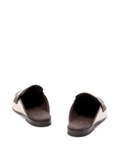 The summery allure of techno raffia reimagines the classic style of these mules. Open in the back, the footwear features a comfortable, tapered silhouette, complemented by the material’s woven texture that creates a light, natural look. The leather keeper and bindings complete the design with a distinctive touch.