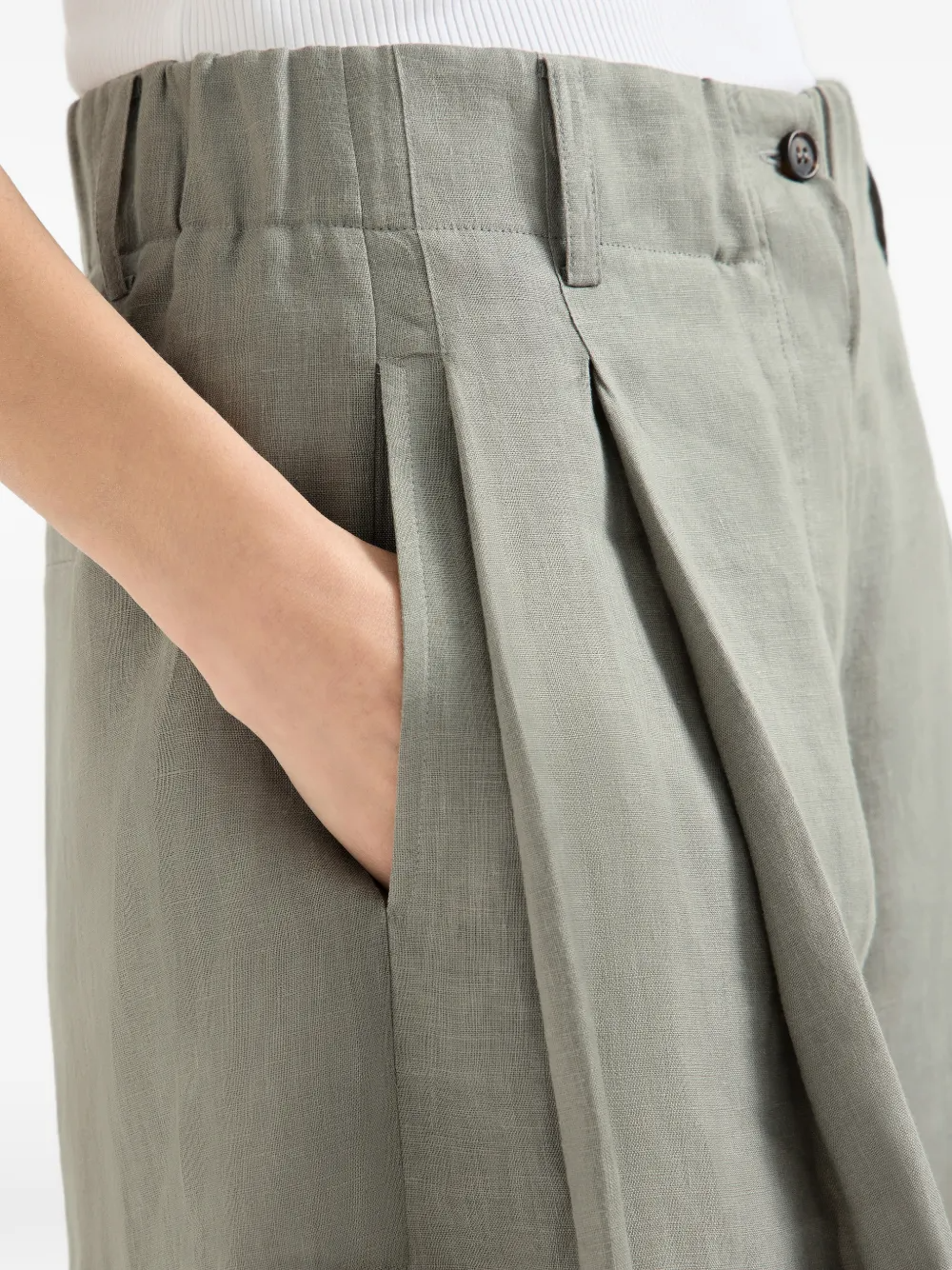 Casual style and tailored details come together perfectly in these linen shorts. The garment combines the practicality of a drawstring, which allows the fit to be adjusted, with double pleats borrowed from the world of classic masculine elegance for a refined, impeccable look.