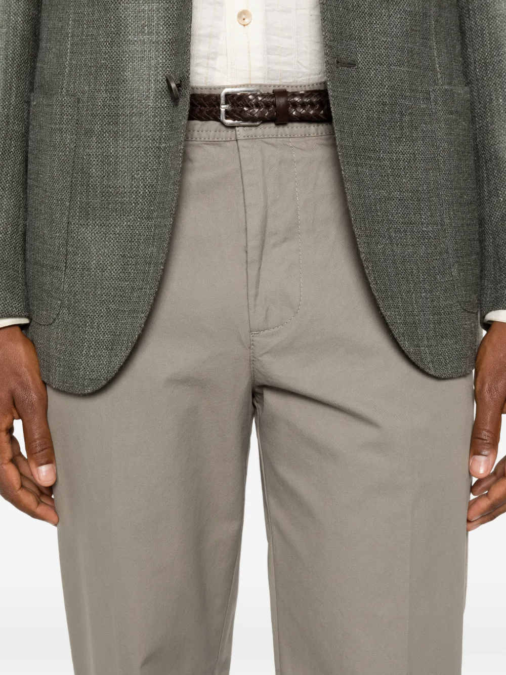 Trousers made from a luxurious cotton-silk fabric. The combination of cotton and silk offers a lightweight and airy feeling on the skin. An ideal garment for an effortless, sophisticated look.